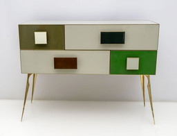 Comò/cassapanca postmoderno italiano in vetro colorato e ottone, anni '80