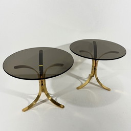 Coppia di tavolini laterali in vetro e ottone, anni '40
