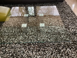 Tavolino angolare in vetro, 80 x 80 cm con bordo sabbiato.