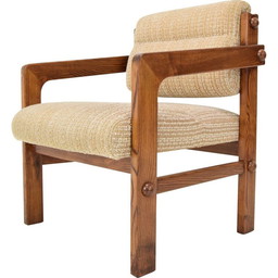 Poltrona in legno e tessuto di metà secolo, Cecoslovacchia, anni '60