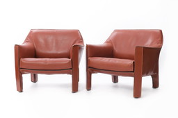 Due sedie Cab, tipo 413 design di Mario Bellini per Cassina in pelle nera