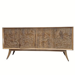 Enfilada / credenza, secondo Rafael García Nicolau, legno di quercia intagliato, metà secolo, anni '70 - Spagna