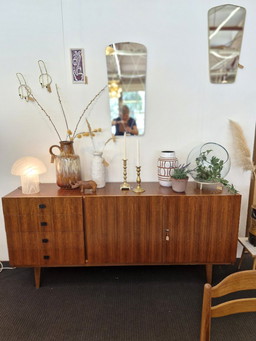 Credenza bassa con tre cassetti, anni '60Credenza bassa con tre cassetti, anni '60