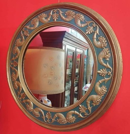 Specchio rotondo con antica cornice in legno gessato 75 cm