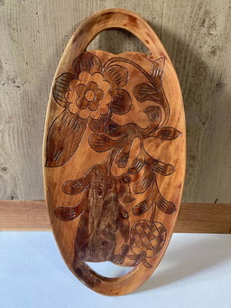 Vassoio da portata in legno di acacia, Guadalupa, anni '80