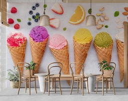 Moderni coni gelato colorati su PVC autoadesivo per la decorazione delle pareti.Moderni coni gelato colorati su PVC autoadesivo per la decorazione delle pareti.