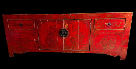 1 mobile basso antico in stile asiatico - legno di olmo rosso - 2 ante - 2 cassetti -