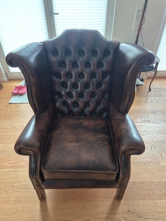 Immergiti nel fascino classico di questa poltrona Chesterfield, che porta un tocco di stile britannico nella tua casa con la sua elegante pelle marrone e l'inconfondibile dettaglio dei bottoni. Perfetta per il soggiorno o l'angolo lettura, questa poltrona offre non solo un aspetto lussuoso, ma anche un comfort eccezionale.