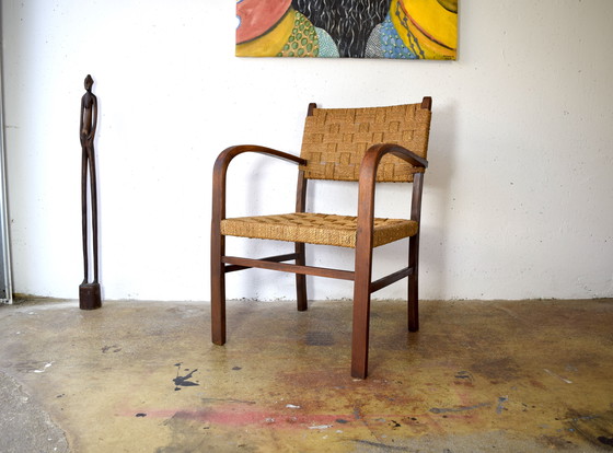 Questa sedia in corda di carta intrecciata è una sedia Erich Diekmann. Insieme a Marcel Breuer, Erich Diekmann era un noto designer di mobili della scena Bauhaus dell'epoca.
