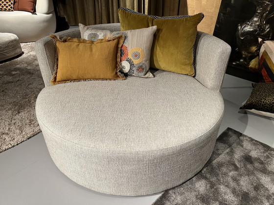 Modello da showroom. Poltrona Olivia su base girevole di Keijser & Co. Rivestimento: Designers Guild Easy Clean Skipton FDG2701/03 Flax. Cuscini decorativi non inclusi. I cuscini possono essere selezionati nel nostro showroom con un supplemento.