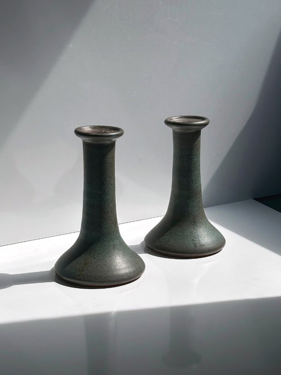 2 candelieri vintage in ceramica anni '70, metà secolo, set di candelieri brutalisti Lava