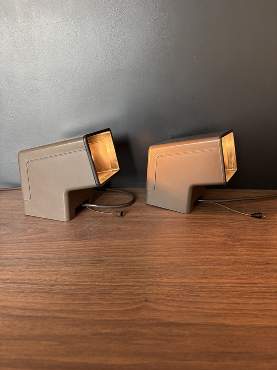 2 applique vintage Philips, modello NWS 93 con interruttore a tirante. Attacco standard E14 (lampadine escluse). Lievi segni d'uso commisurati all'età, ma in ottime condizioni originali. Questo tipo di lampada, con il suo delizioso colore marrone vintage, risale agli anni '70/'80 ed è presente nel catalogo Philips del 1977/1978. Larghezza circa 11 cm. Altezza e profondità circa 15 cm.