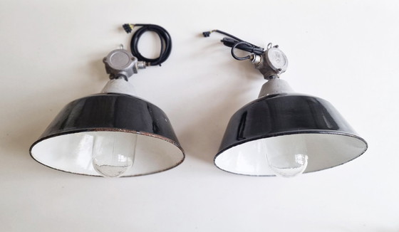 Due autentiche lampade vintage di fabbrica provenienti dall'Ungheria, originariamente utilizzate in una fabbrica di mattoni degli anni '50.