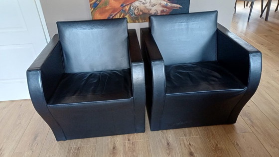 2 poltrone elementari in pelle di Jean Nouvel Ligne Roset 1991