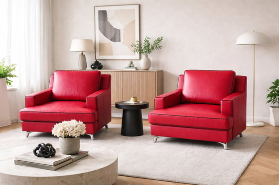 Provate il massimo comfort e l'eleganza di queste due poltrone in pelle di Novastyl. Queste moderne poltrone sono rivestite in pregiata pelle rossa, creando un'atmosfera vivace e accogliente in qualsiasi ambiente. Le linee pulite e il design minimalista rendono queste poltrone un complemento perfetto per un arredamento contemporaneo.