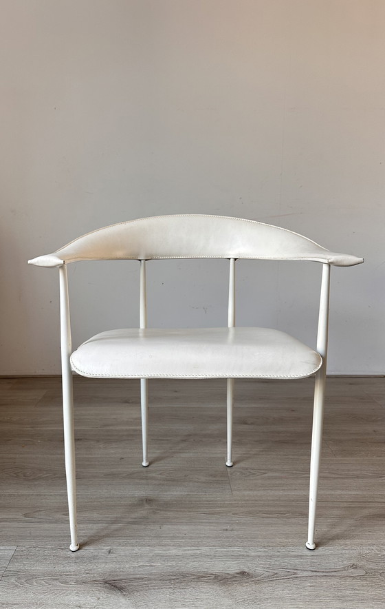 2 sedie Fasem P40 originali rivestite in pelle bianca con struttura in acciaio bianco. Le sedie sono in buone condizioni.