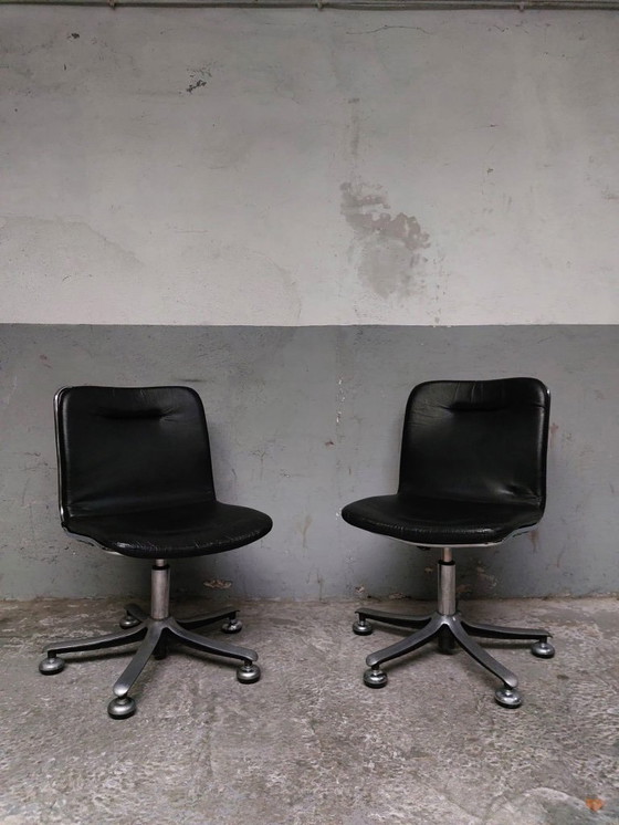 2 sedie da scrivania Swissform in cromo e pelle nera di Sitag, anni '70