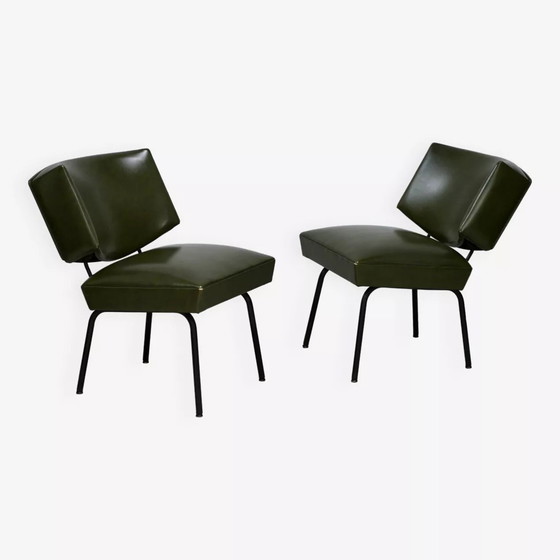 Dimensioni: H73 x L50 x P68 Colore: Verde Materiali: Skai Stile: Vintage Coppia di poltrone tubolari in similpelle. Circa 1950. Condizioni vintage: piccole tracce e usura/tagli visibili. Vedi foto. Sedili a molle d'epoca (per sprofondare bene quando ci si siede). Solido e stabile, design anni '50. Schienale ergonomico. Altezza seduta 40 cm.