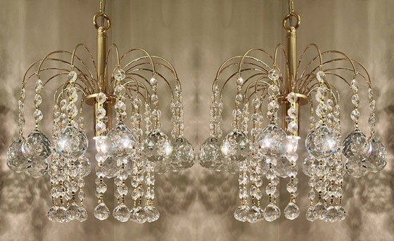 2 splendidi lampadari Swarovski di marca! Imponente lampadario a sospensione in cristallo del marchio di lusso Louis LX, noto per il suo design e la sua qualità. Decorato con lussuosi cristalli Swarovski originali di alta qualità e una moderna montatura in foglia d'oro 24 carati con sfere di cristallo Spectra.