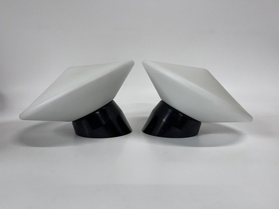 2x RAAK discus Mid Century wandlamp wit opaalglas bakelieten armatuur model B1410