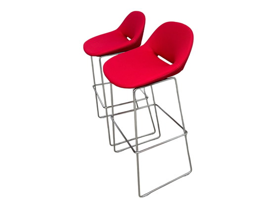 Lo sgabello da bar Beso della collezione Artifort è un progetto di Khodi Feiz per il marchio leader del design olandese. Beso, che in spagnolo significa "bacio", si distingue per le sue linee semplici. Il suo design flessibile e l'elevata qualità del comfort di seduta rendono Beso un'aggiunta gradita a qualsiasi cucina. Questi due sgabelli da bar Artifort sono in perfette condizioni. Larghezza: 48 cm, Altezza: 90 cm, Profondità: 50 cm, Altezza seduta: 71 cm, Materiale: Tessuto