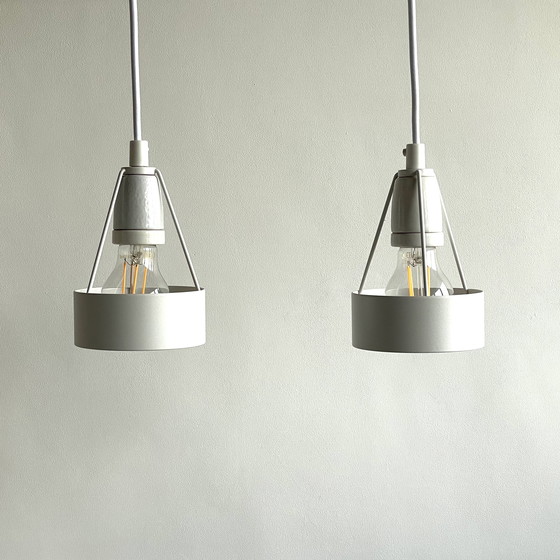 Un set di bellissime e rare lampade a sospensione vintage Louis Poulsen Pakhus Pendant. Si tratta di lampade molto rare e ricercate, ormai fuori produzione da tempo. Le lampade sono completamente ricablate e dotate di 3 m di cavo in tessuto.