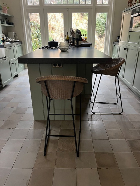 Splendidi sgabelli da bar Vincent Sheppard in un'elegante tonalità grigio. Questi sgabelli combinano un design moderno con un look senza tempo, perfetti per qualsiasi cucina o bar.
