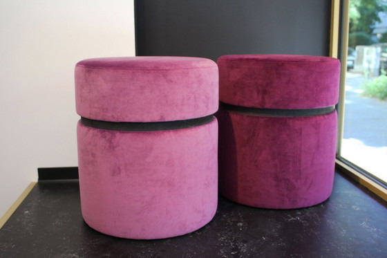 Scopri l'eleganza e il comfort di questi due sgabelli di Bielefelder Werkstätten/JAB. Queste eleganti sedute sono disponibili in una vivace tonalità rosa e viola, aggiungendo un tocco di colore e raffinatezza a qualsiasi ambiente.