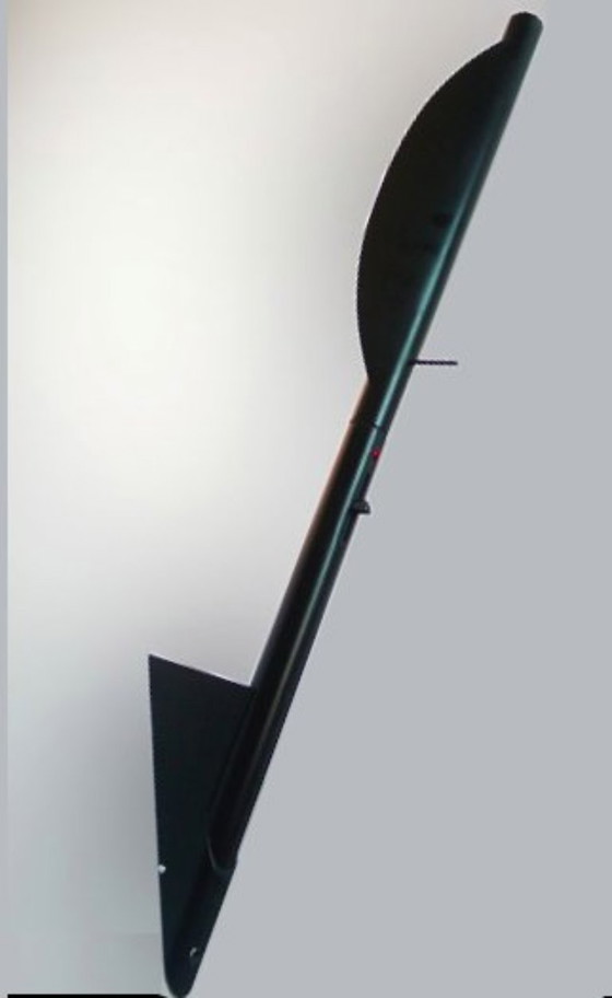Lampade da parete anni 80 art. 3400 mod. Kalla della TRE CI LUCE di Solaro MI, design Lorenzo Stano e Paolo Bistacchi Milano made in Italy (foto 3). Nella foto 2 si può apprezzare la resa estetica della lampada montata. Il punto luce è girevole può essere dotato di lampadina alogena max 300W R7s 240V sostituibile con più moderni ed efficienti led per un’illuminazione eccezionale (lampadine non in dotazione). Dimensioni lunghezza totale cm 70 porta lampada cm 30 x 8,5 colore nero.