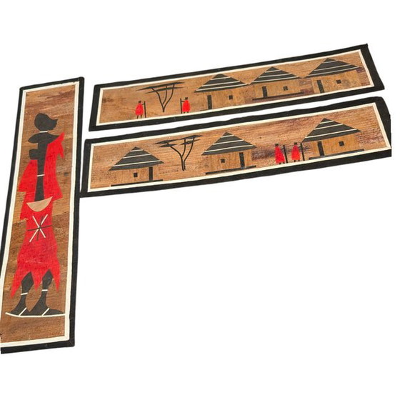 Scoprite la bellezza dell'artigianato con questo set di tre pannelli murali in paglia intarsiata. Ogni pannello misura 40 cm e presenta un bellissimo motivo tribale che aggiunge un tocco di cultura e autenticità ai vostri interni. Le calde tonalità del marrone, abbinate a vivaci accenti rossi, rendono questi pannelli un elemento di grande impatto in qualsiasi ambiente.
