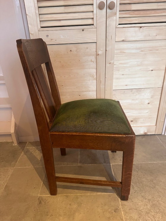 Sedie Art Déco in rovere con rivestimento in velluto verde. Circa 1920-1930, stile Scuola di Amsterdam.