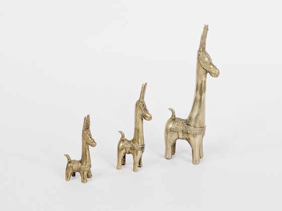 3 statuette vintage in ottone raffiguranti asinelli o lama | Animali decorativi di metà secolo