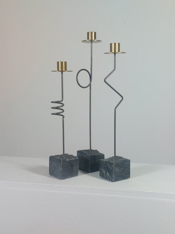 3x candelieri vintage Ikea Ehlen Johansson Krasen in metallo e granito