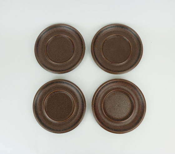4 piattini per tazze da tè della serie di stoviglie "Ruska". Disegnati da Ulla Procope nel 1960 per Arabia Finland.