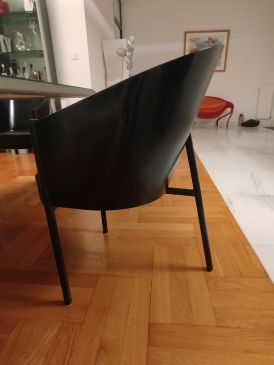 CondizioneBuonoColoriNeroMaterialeLegno, PelleNumero di articoli4MarchioPhilippe StarckPrimo proprietarioSìAltezza80 cmLarghezza47 cmProfondità58 cmAltezza del sedile47 cmSegni di utilizzoGraffi