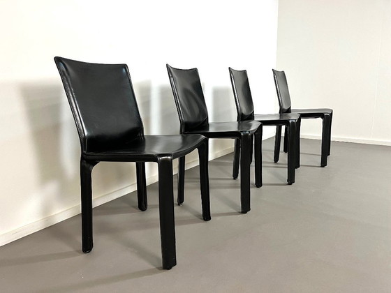 4 sedie da pranzo CAB 412 in pelle nera di Mario Bellini per Cassina, anni '80.
