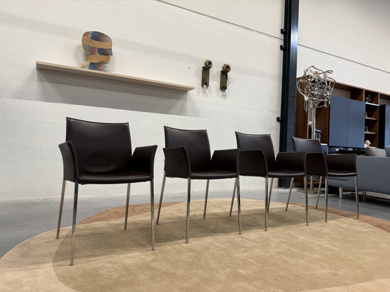 4 sedie da pranzo Zanotta Zia in pelle marrone come nuove