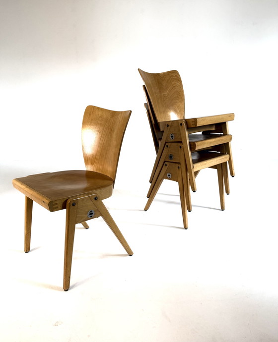 4 sedie impilabili in compensato vintage, Kaderer anni '60