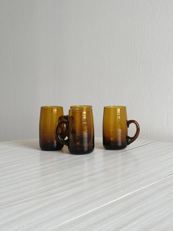 Un superbo set di 4 tazze in vetro ambrato soffiato a mano, perfette per decorare la vostra cucina retrò. Queste tazze vintage dal design unico aggiungeranno un tocco caldo e autentico ai vostri momenti di caffè o tè. Ogni tazza rivela il fascino dell'artigianato d'altri tempi e l'esperienza del vetro soffiato a mano. Ideale per un arredamento originale o come regalo pieno di carattere per gli amanti delle stoviglie rétro.