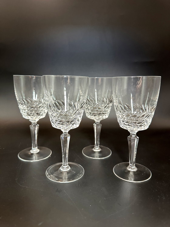 Realizzati da Spiegelau nella Germania occidentale negli anni '60, questi 4 bicchieri da vino in cristallo al piombo sono in ottime condizioni.