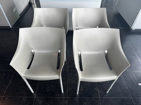 Descrizione del prodotto: La sedia Dr. NO di Philippe Starck per Kartell è un classico Kartell, noto per la sua perfetta combinazione di funzionalità e bellezza. Resiste facilmente a temperature estreme; è possibile impilare fino a quattro sedie ed è nota per il suo design a forma di secchiello, il design elegante, la funzionalità e la facilità di pulizia. Profondità/Lunghezza: 49 cm. Larghezza: 51,5 cm. Altezza: 79,5 cm. Le sedie sono in buone condizioni con visibili segni di usura (piccoli graffi, abrasioni sulle gambe).