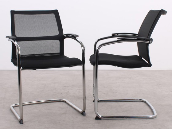 La Open Up usata, disegnata da Inger Mosholt Nielsen per Sedus, coniuga un aspetto sobrio e comfort. La seduta offre un supporto stabile, mentre lo schienale in rete si muove fluidamente. Perfetta per lunghe sedute. La struttura a slitta in metallo rende la sedia leggera e aperta, mentre i braccioli rivestiti in plastica contribuiscono a una posizione di seduta rilassata. Il rivestimento rinnovato e il design pulito rendono la Open Up adatta a qualsiasi ambiente di lavoro moderno.