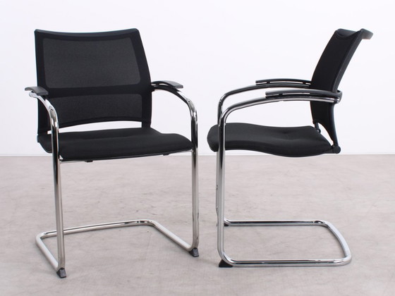 La Open Up usata, disegnata da Inger Mosholt Nielsen per Sedus, coniuga un aspetto sobrio e comfort. La seduta offre un supporto stabile, mentre lo schienale in rete si muove fluidamente. Perfetta per lunghe sedute. La struttura a slitta in metallo rende la sedia leggera e aperta, mentre i braccioli rivestiti in plastica contribuiscono a una posizione di seduta rilassata. Il rivestimento rinnovato e il design pulito rendono la Open Up adatta a qualsiasi ambiente di lavoro moderno.