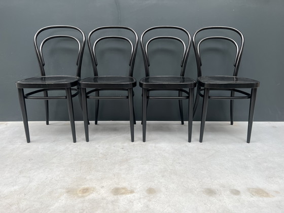 Valorizzate la vostra esperienza culinaria con questo squisito set di quattro sedie Thonet 218, in un'elegante tonalità nera. Queste sedie incarnano l'eleganza senza tempo e la maestria artigianale per cui Thonet è rinomata, rappresentando un'aggiunta sofisticata a qualsiasi sala da pranzo.
