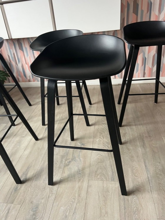 Set di 5 eleganti sgabelli da bar Hay in un elegante colore nero. Perfetti per qualsiasi cucina o bar, questi moderni sgabelli da bar (75 cm) offrono comfort e design elegante. La combinazione di materiali artistici e legno garantisce una struttura robusta e un look contemporaneo. Ideali sia per la casa che per gli ambienti commerciali. Gli sgabelli sono stati usati poco.