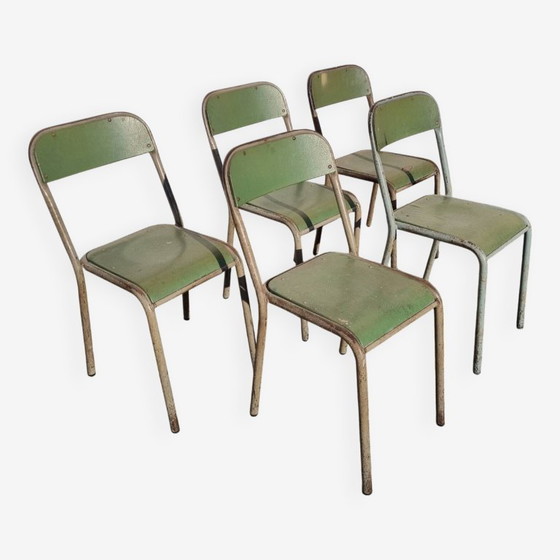 5 sedie tolix vecchie e d'epoca, credo degli anni 30/50. Struttura in ferro e seduta e schienale in legno. 2 di esse presentano difetti, vedi foto. Da ridipingere o da lasciare così com'è.