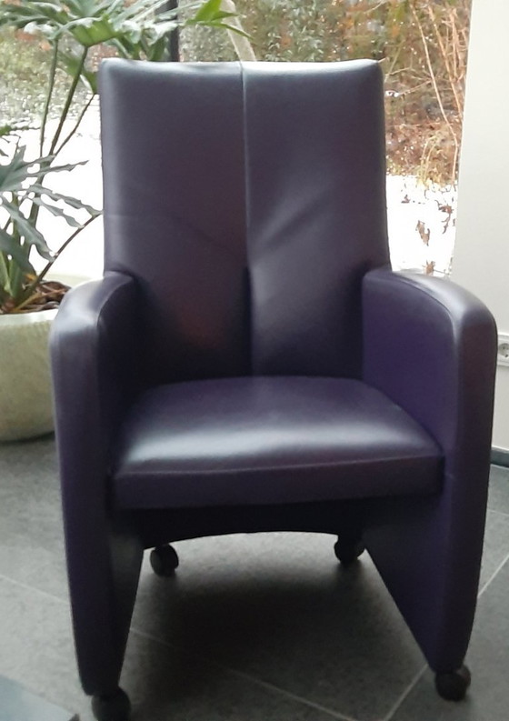 CondizioneBuonoColoriViolaMaterialePelleNumero di articoli6MarchioLeoluxAltezza98 cmLarghezza63 cmProfondità46 cmAltezza del sedile46 cm