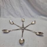 6 piccoli cucchiaini da caffè, modello art déco dei primi del Novecento, in metallo argentato.
