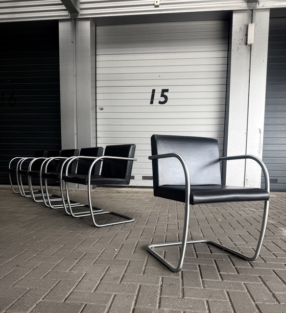 Set di 6 sedie Brno di Ludwig Mies van der Rohe per Fasem, in pelle nera