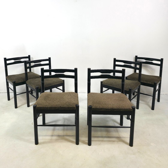 6 sedie da pranzo de Coene in legno nero, vintage, Belgio anni '70